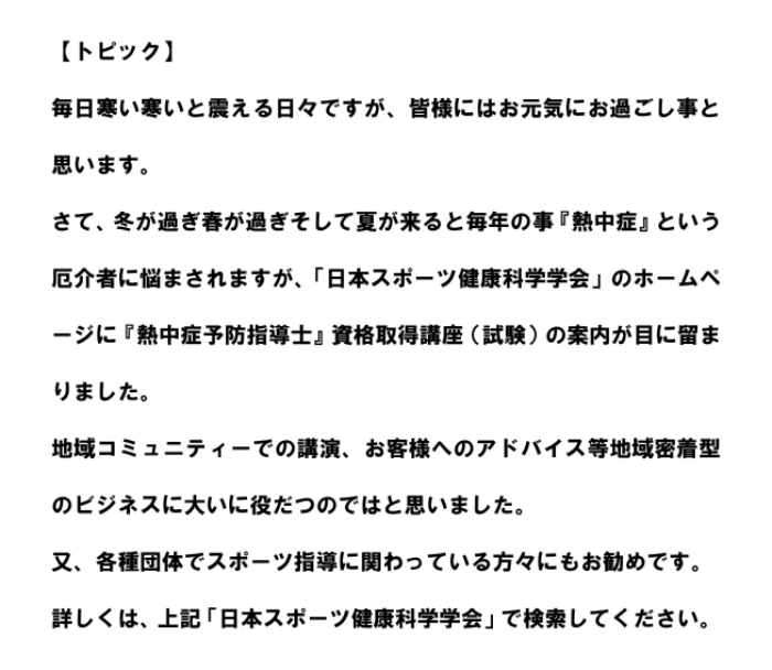 | 2025.06.21 | 令和7年度 JSERA『スポーツ用器具管理アドバイザー受講・修了者名簿』14社20名 について掲載させて頂きました。 運動具用品のメンテナンスは、是非とも加盟店へご用命ください。 スポーツを安全にする為にスポーツ器具の点検を! メンテナンスは、是非とも加盟店へご用命ください。 |