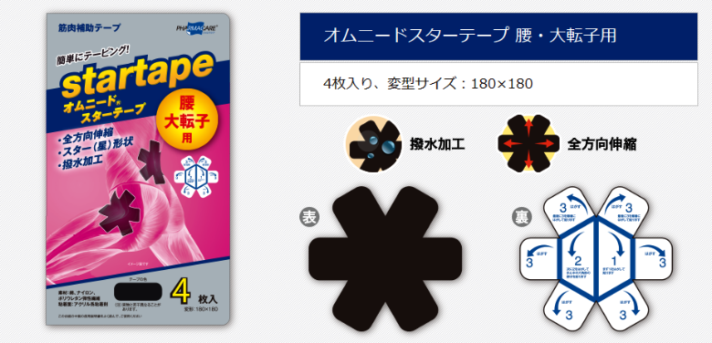 ●水・汗に強い、全方向からの圧縮が可能な星型テーピング