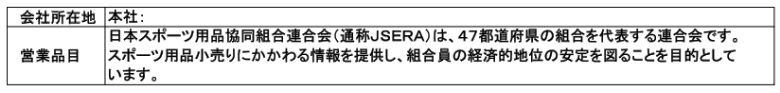 日本スポーツ用品協同組合連合会(JSERA)は、神奈川県運動具商協同組合の上部団体です。
