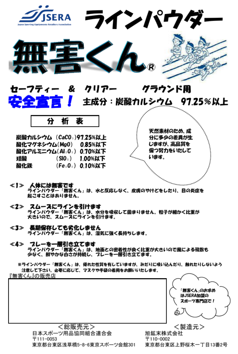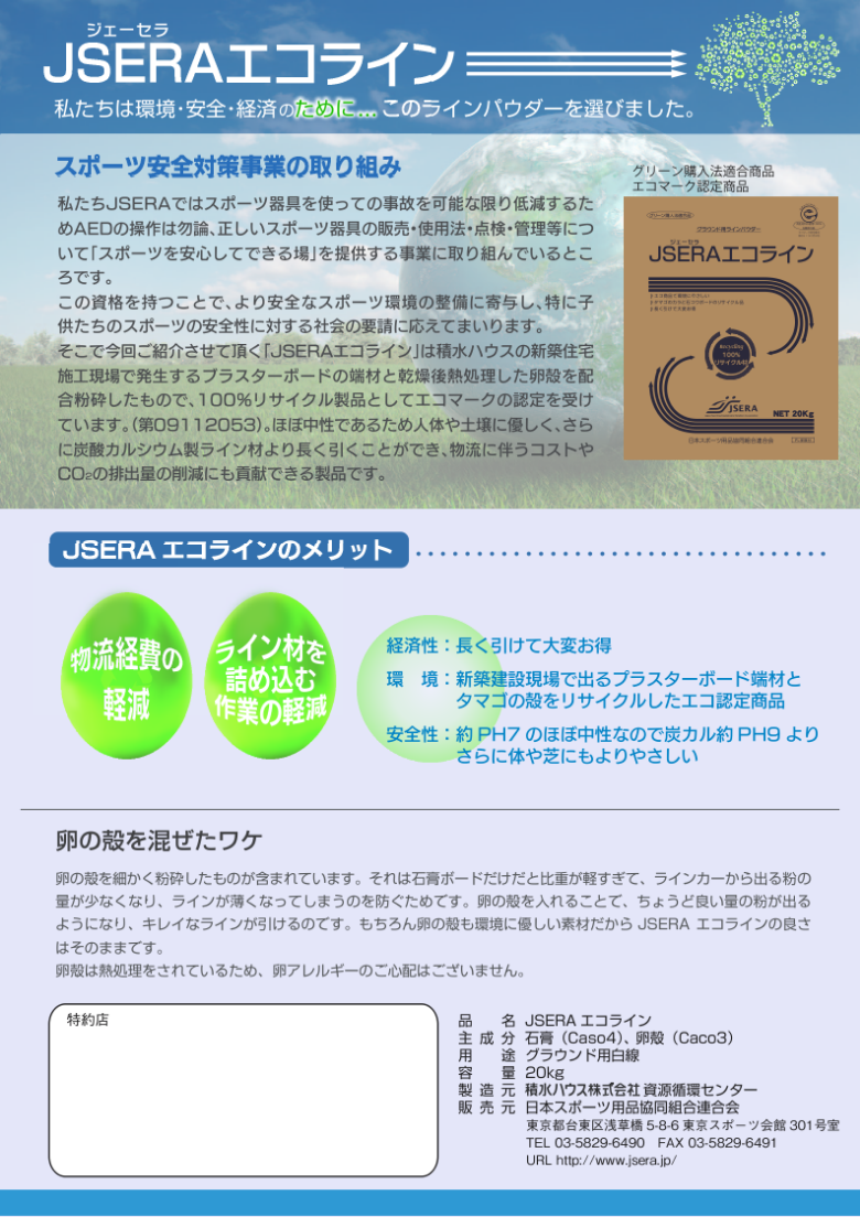 お問合せは、組合事務所または組合加盟店までお願い致します。 ラインパウダー 「無害くん」紹介パンフのダウンロードは、こちらをクリック <258KB> 神奈川県運動具商協同組合では、エコラインの取り扱いを行っております。 お問合せは、組合事務所または組合加盟店までお願い致します。 組合取り扱い商品